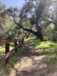 The trail is accessed from Greenmeadow Ave and connects to the Los Robles Trail. The western half of the loop gets the name Whole Access Trail because the tread is smooth and hard enough for wheelchairs and strollers, and a fence alongside includes a cable to guide the blind with interpretive signs in braille. You can follow our easy hike of the Oak Creek Canyon Loop.