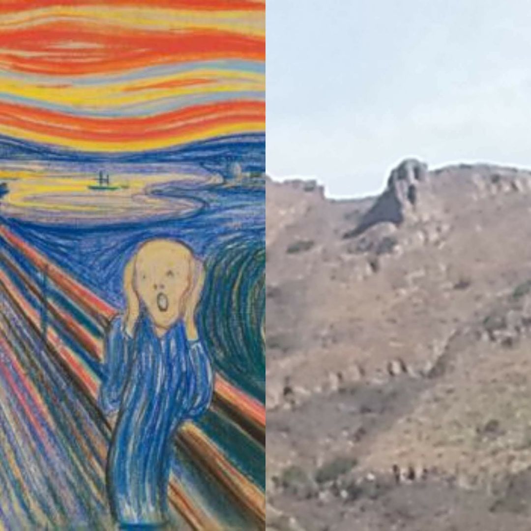 To the left you can see the painting (one of five versions) next to a close-up of the rock feature. The similarity is incredible!