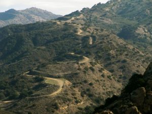 Albertson Motorway (AKA Albertson Fire Road) climbs three miles through the Lang Ranch Open Space from the east end of Lang Ranch Parkway to China Flat and beyond. Over that distance it gains 1000′ in elevation. The road continues through the old Rocketdyne facility but the public is not allowed there.