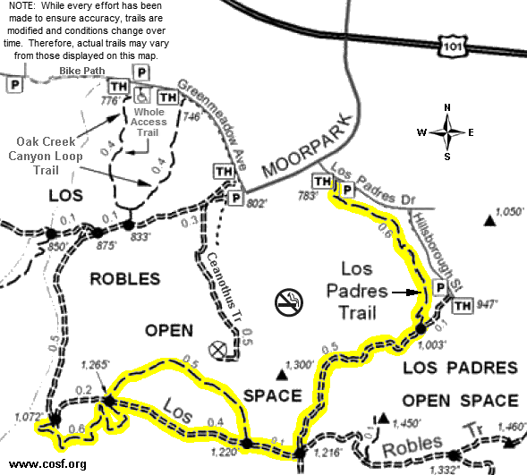 How to get there: From the 101 freeway, head south on Moorpark Rd for 0.3 miles. Turn left on Los Padres Dr. and go about 50 yards. The trailhead is on right. Park on the street.